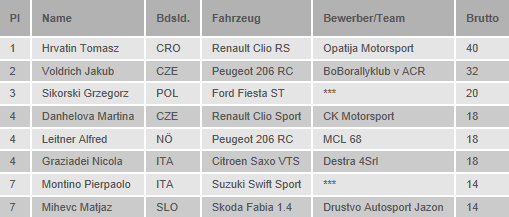 Punktestand im Rallye-Pokal der OSK, Division P1:
